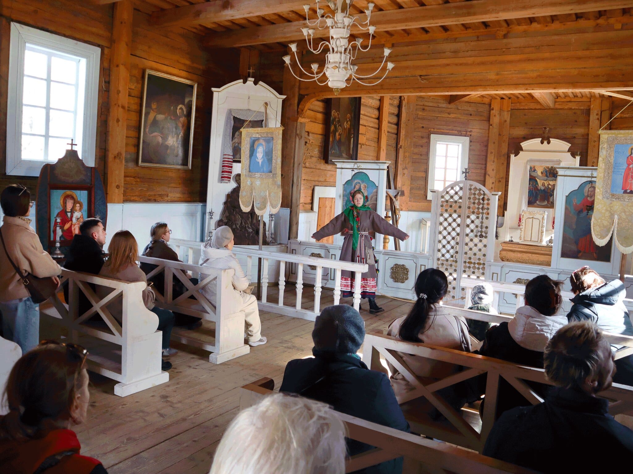 З 14.00 да 15.00 мы акунуліся ў непаўторную атмасферу беларускай глыбінкі. Экскурсія па помніках драўлянага дойлідства ператварылася ў сапраўднае падарожжа ў часе. Мы не проста глядзелі на будынкі — мы адчувалі подых мінулых стагоддзяў, дакраналіся да гісторыі, якая жыве ў кожным бярвенні старадаўніх хат.